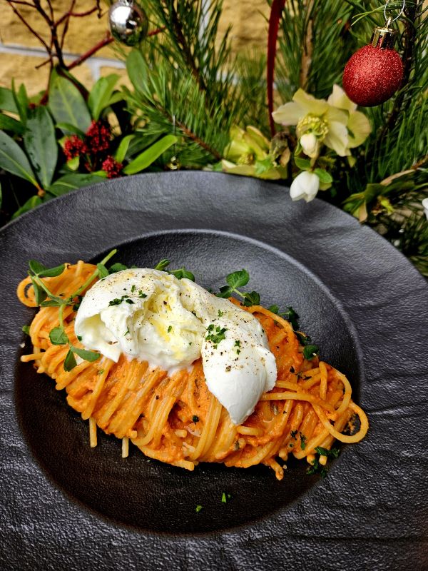 Spaghetti s krémovou rajčatovou omáčkou a buvolí mozzarellou