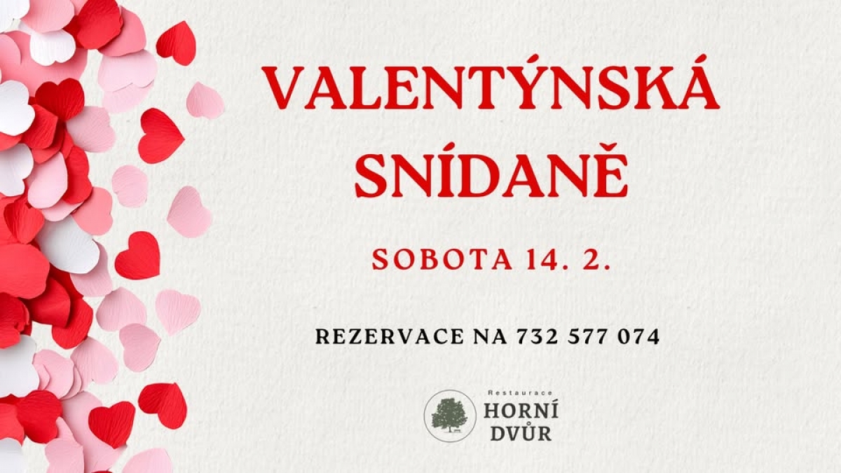 Překvapte svou drahou polovičku na Valentýna romantikou hned od rána a přijďte na valentýnskou snídani k nám do Restaurace Horní dvůr.