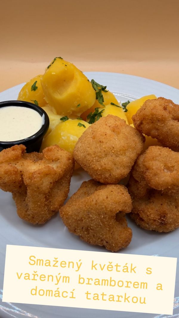 Smažený květák s vařeným bramborem, domácí tatarka 200 g