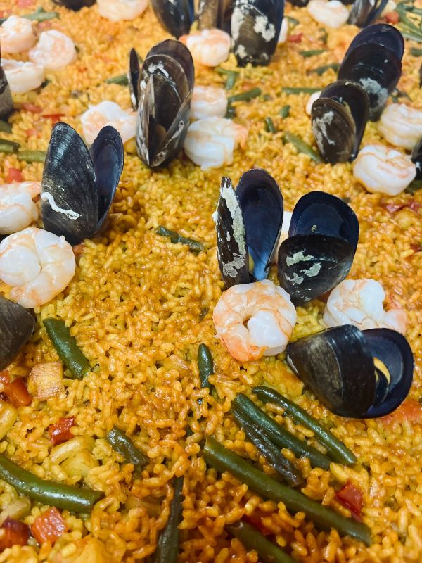 Paella de marisco - pravá španělská paella s mořskými plody.