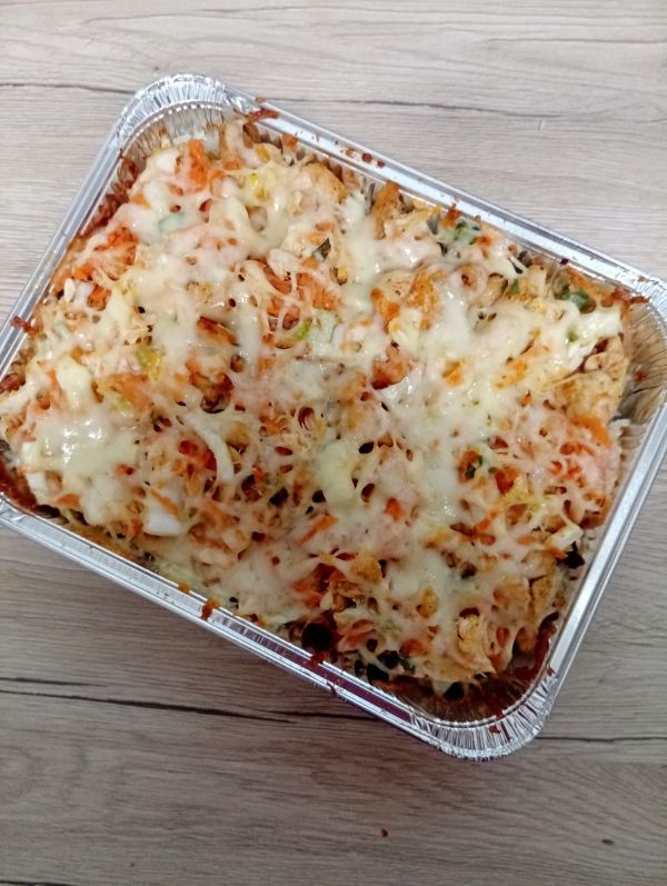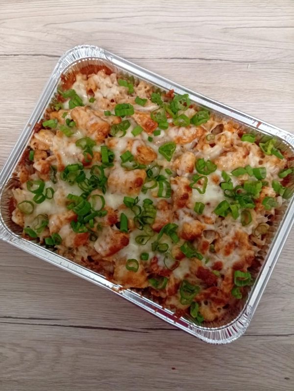 650 g Miska s kuřecím masem v rajčatové omáčce (kuřecí maso, těstoviny, rajčatová omáčka, bazalka, česnek mozzarella) 1, 3, 7