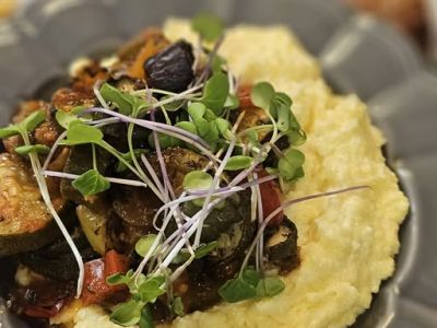 Kuřecí závitek plněný hermelínem, smažená polenta