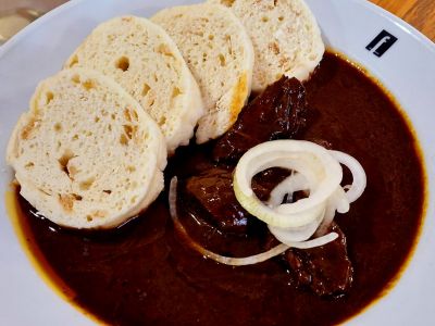 150g Vepřové výpečky, bramborové knedlíky a červené zelí 1, 3, 7