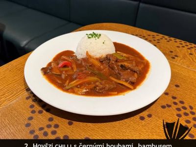 Vepřová kotleta bez kosti po cikánsku s dušenou jasmínovou rýží