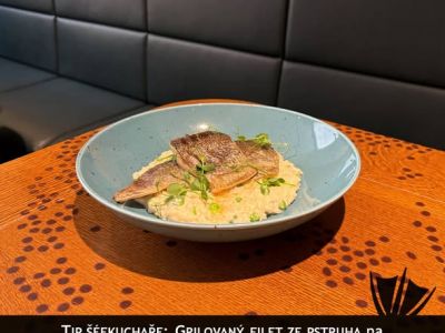 SPECIALITA DNE: Krémové dýňové Arborio rizoto s filírovaným kuřecím prsem z české farmy a sýrem Gr. Padano [GF, 7, 12]