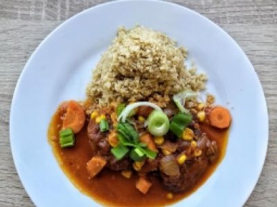 Masové nudličky s chilli omáčkou, rýže (1,3,6)