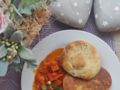 300g Shakshuka zapečená s vejcem a sýrem feta, rozpečený pita chléb