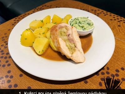 Kuřecí řízek Cordon Bleu se šťouchanými brambory a česnekovou majonézou 137