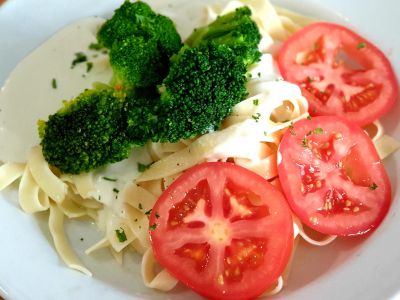 Rigatoni s kuřecím masem, krémová omáčka s brokolicí