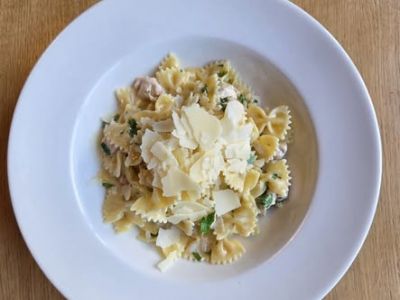 Vaječné špecle s kuřecím masem na kari s koriandrem a smetanou