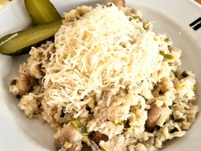 Špaldové risotto s konfitovanou kachnou a pošírovaným vajíčkem 137912