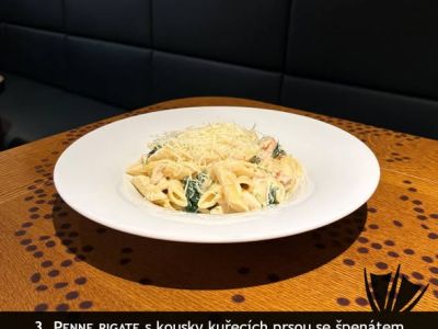 Penne s omáčkou z lesních hub a tymiánu se sýrem Grana Padano 137