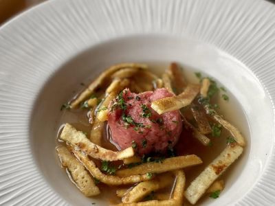 200g Anglická telecí játra hranolky a tatarka