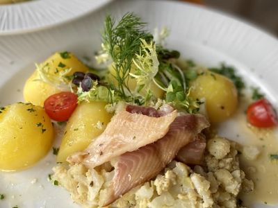Smažený květák s bramborami, tatarská omáčka 137