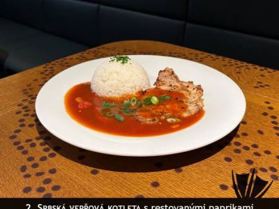 SRBSKÉ VEPŘOVÉ RIZOTO sypané sýrem, podávané s kyselou okurkou