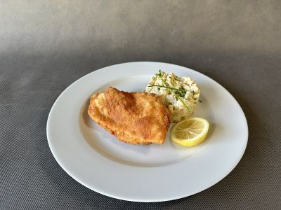 150g Smažený vepřový řízek, bramborový salát 1a, 3, 7, 9, 10