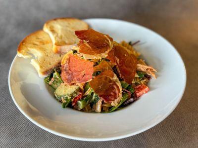 100g Grilovaný Hermelín podávaný na zeleninovém salátu s bylinkovým dresinkem