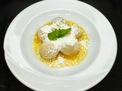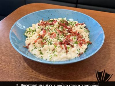 * Svíčková na smetaně - vařený hovězí ořech se svíčkovou omáčkou, variace karlovarských a houskových knedlíků a brusinky