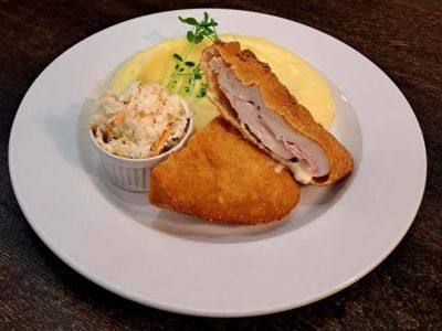 Kuřecí prsní řízek, Vídeňský bramborový salát, brusinky 285