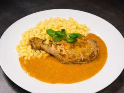 1/2 vývar+ Vepřová kýta na paprice s těstovinou