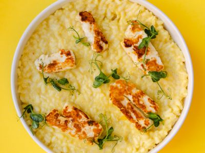 120g Grilované kuřecí prsíčko s gorgonzolovou omáčkou, restované brambory 167