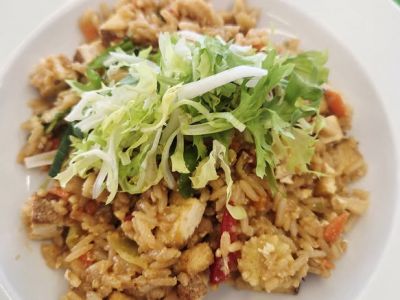 Rozlítaný Španělský ptáček s Davelskou uzeninou, pečenou rýží a smaženou cibulkou