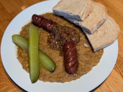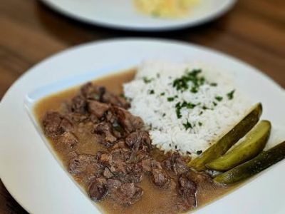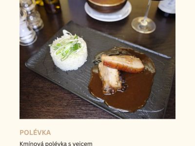 Menu - Staročeský vepřový guláš, houskový knedlík (kolínka) - Polévka