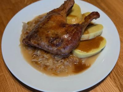 Kus uzené vepřové kýty se zelím a houskovým knedlíkem