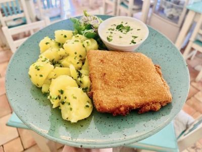 Smažený kuřecí řízek s vařenými brambory a tatarskou omáčkou 150g