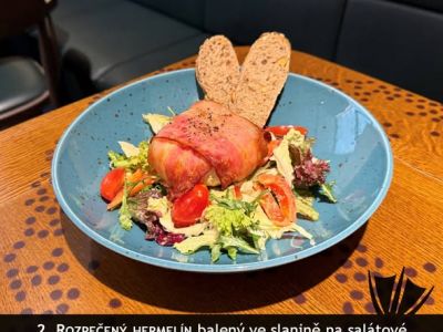 Kančí záhorácký závitek, vařené brambory 280 Kč