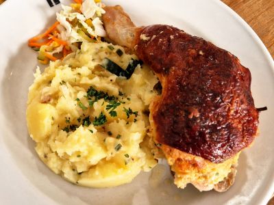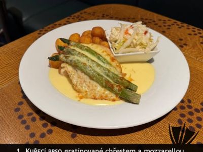 Holandský řízek s goudou, bramborová kaše a mrkvový salát (1, 3, 7) 137