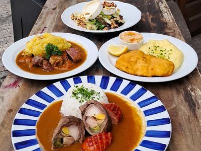 Filírovaná vepřová panenka se švestkovou omáčkou – šťavnaté plátky vepřové panenky s omáčkou z karamelizovaných švestek, podávané se šťouchanými brambory s pečeným pórkem a listovým salátem