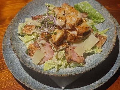 150g Kuřecí plátek ve vlastní šťávě na těstovinovém salátu se zeleninou a zakysanou smetanou, VEGETARIÁNSKÁ VERZE: S grilovaným hermelínem a omáčkou chipotle + nápoj 137910