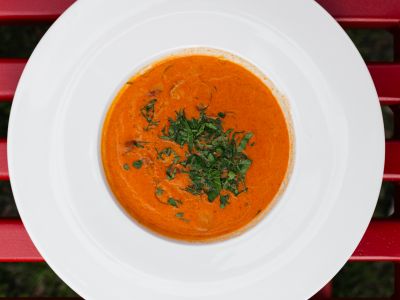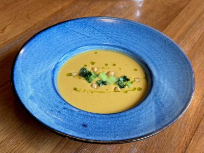 Polévka 1: Krém z pečené zeleniny, parmazánové krutony