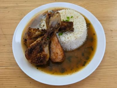 Menu 1 250g Pečené kuře na másle s dušenou jasmínovou rýží a míchaným zeleninovým salátem