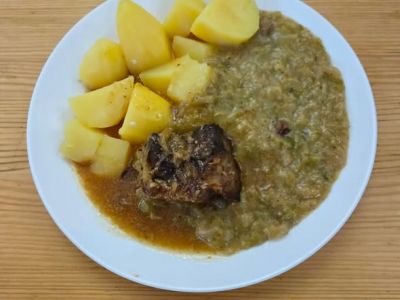 150g Hovězí maso na červeném víně a kořenové zelenině, bramborová kaše 1,7,9