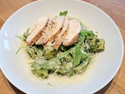 MENU 3 350g - Zeleninový salát s kuřecím masem, mozzarellou a bazalkovým pestem