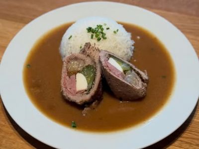 120g Španělský ptáček, dušená rýže (houskový knedlík) 1310