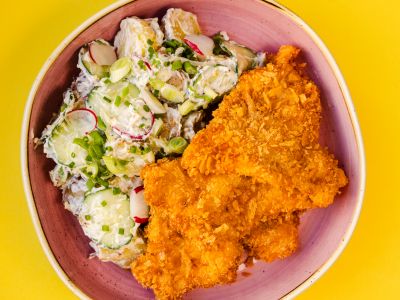 Smažený vepřový řízek, bramborový salát (1, 3, 7, 9, 10)