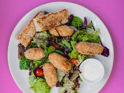 Uzený sýr v bramboráku, salát coleslaw 137