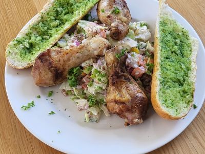 750g Kuřecí křidélka v chilli marinádě, nivový dip, řemeslný kváskový chléb 71.13