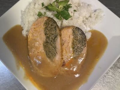 Kuřecí Cordon Bleu plněné šunkou a sýrem, bramborová kaše