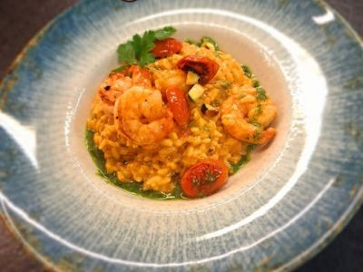 GNOCCHI (v) - Gnocchi v krémové omáčce se sušenými rajčaty, pórkem, česnekem, cherry rajčaty, baby špenátem a granou padano, zdobené bazalkou