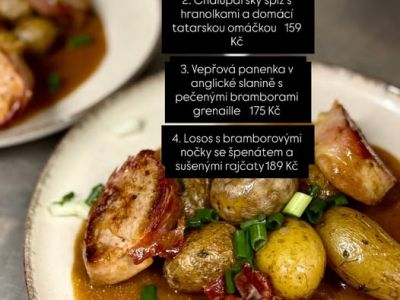 Vepřová kotleta Mexiko, pečené brambory, tatarka (1, 7) 17