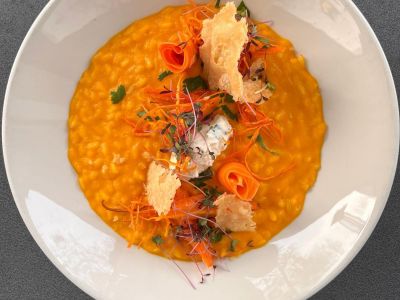 Krémové hříbkové risotto s vepřovou panenkou a parmazánem
