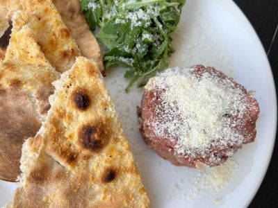 Játra “Rumcajs” na roštu grilovaná s opečeným bramborem a naší tatarkou