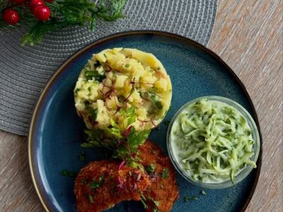 1 p Holandský řízek, bramborová kaše, salát – 1, 3, 7