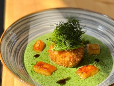 150g candát pečený na másle a bylinkách, citron, šťouchané brambory / gratinované brambory 47