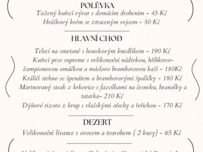 Od 7hod snídaně, polévky, míchaná vejce, párky, speciální chlebíčky, čestvé fresh džusy