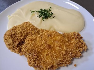 150g Smažené řízečky z panenky, šťouchané brambory 137